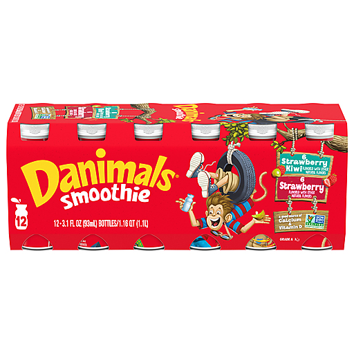 Danimals Strawberry and Strawberry Kiwi Smoothie Bottles are creamy dairy drink snacks for kids that provide 2 grams of protein per serving and are a good source of calcium and vitamin D to help support strong bones. With no high fructose corn syrup and no preservative ingredients, Danimals smoothies are on-the-go easy snacks with a flavor that kids will love and that you can feel good about.