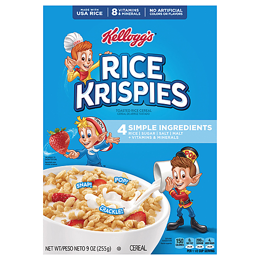 Whether you're enjoying it by the bowlful or through the tempting taste of The Original Treats recipe, Kellogg's Rice Krispies cereal makes it easy to bring a little magic to your day. Made with crispy oven-toasted puffed rice cereal, Rice Krispies are a satisfying and healthy way to start your morning. Our healthy cereal is a good source of 8 vitamins and minerals and fat free. Decorate your bowl with fresh strawberries, blueberries or bananas; Enjoy sweet cereal milk after a delicious bowl of Rice Krispies cereal. Whip up a tasty batch of memories with your family by making marshmallow treats together. All you need are three simple ingredients, butter, marshmallows and Rice Krispies cereal. Whether you're enjoying a morning bowl of Rice Krispies cereal, a scrumptious marshmallow treat with your family, or digging in to a late night snack, the delicious possibilities of this crispy, puffed cereal are endless.