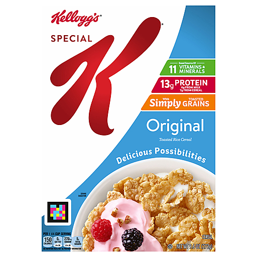 Do what's delicious with Special K, a wholesome breakfast cereal made from tasty ingredients. Includes 1, 9.6-ounce box containing crisp, toasted rice flakes help you stay on track for the day ahead. Just as nutritious as it is delicious, every bowl provides a good source of 11 vitamins and minerals. It contains folic acid, B Vitamins, and Iron, plus Vitamins A, C, and E as antioxidants women need (beta-carotene (source of vitamin A)) and is made with no artificial colors or flavors; make it an irresistible, low-fat part of your lunch, dinner or late-night snack. Try it as a convenient work day or between-meal treat. Enjoy Special K with dairy or nut-milk. Top it with strawberries, blueberries or bananas. Add it to your favorite yogurt, smoothie, or trail mix recipe. Morning time or any time, Kellogg's Special K cereal is a flavorful choice the whole family can feel good about.